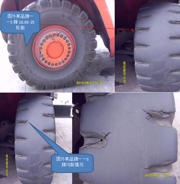 8、國外品牌輪胎使用情況,同樣出現(xiàn)花紋溝底裂口——大連勝獅國際